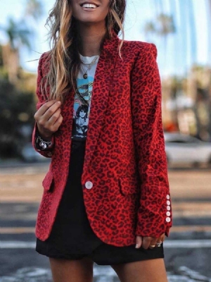 Leopard Innpakket Langermet Langermet Vanlig Casual Blazer For Kvinner