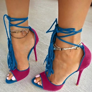 Faux Suede Stiletto Heel Heel Covering Color Block Dame Sandals