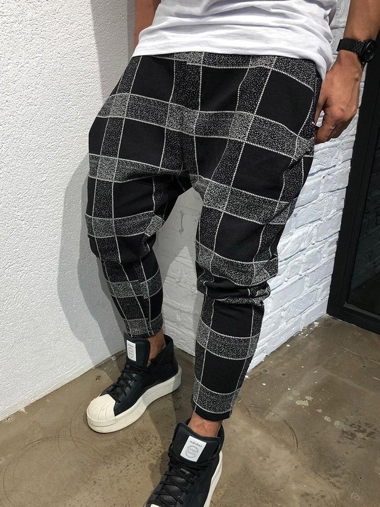 Blyant Rutete Trykk Midt Midje Stil Menns Casual Bukser