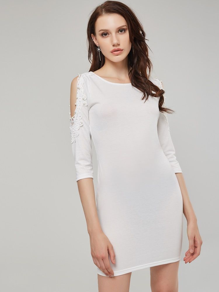 Bodycon-kjole Med Trekvart Ermer Perler