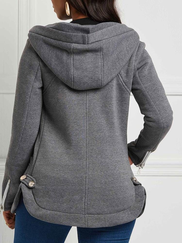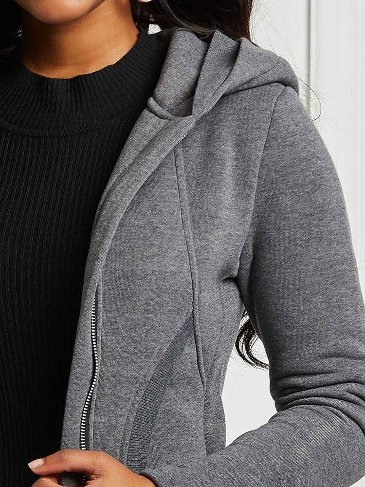 Dame Jakke Med Glidelås Og Avslappet Hette
