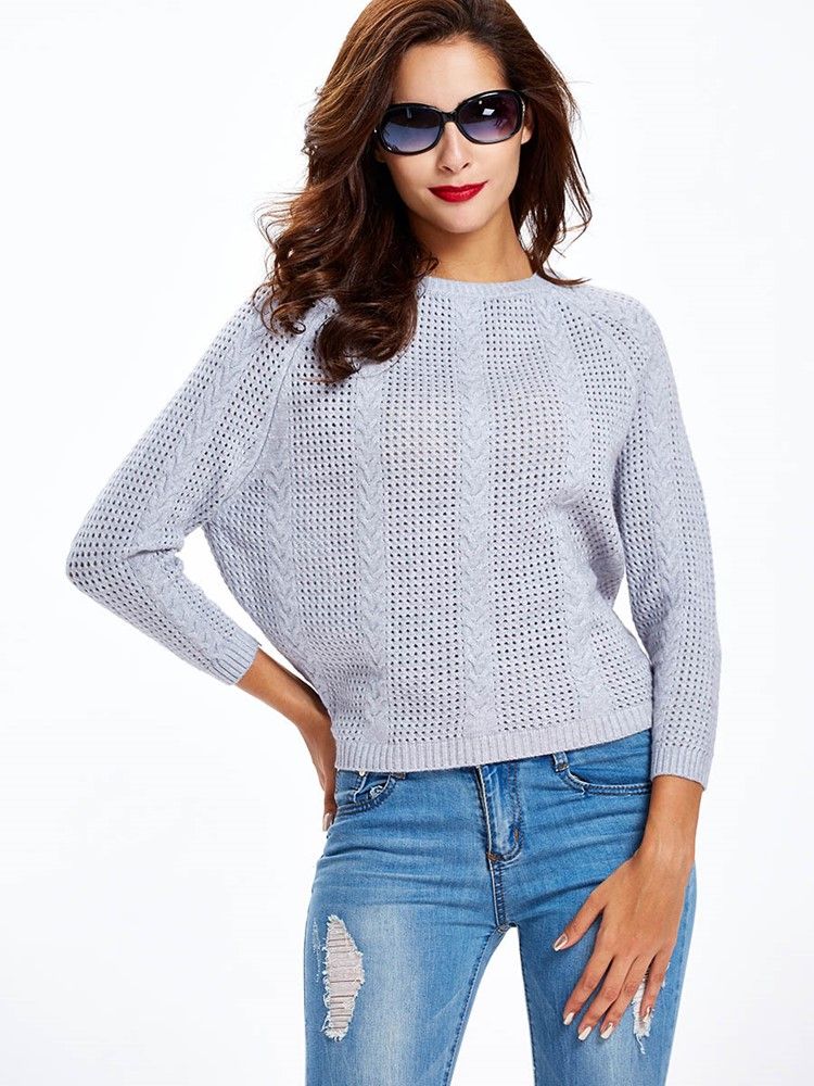 Ensfarget Hule Batwing Løse Strikkevarer For Kvinner