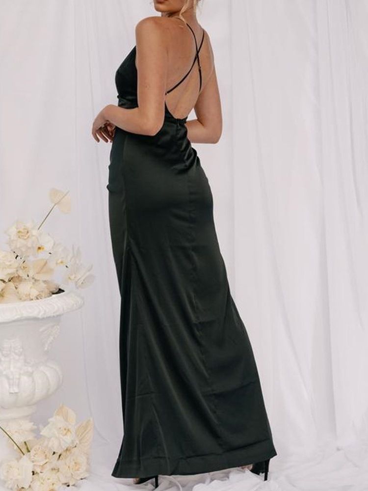 Ermeløs Kjole Med V-hals Og Gulvlengde