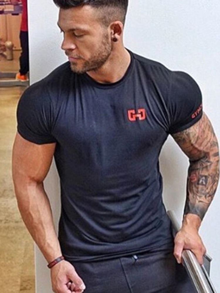 Fargeblokktrykk For Menn Med Korte Ermer Pullover Gym Sports T-skjorte