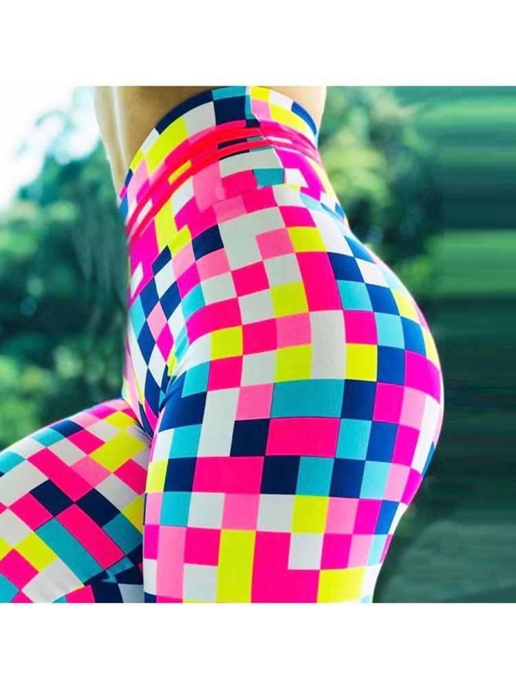 Kvinner Fargeblokktrykk Høy Midje Yoga Leggings Høy Midje Tiktok Leggings