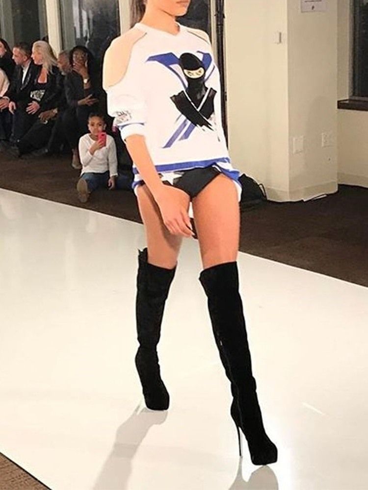 Kvinner Print Over Kneet Langermet Vanlig Casual Kjole