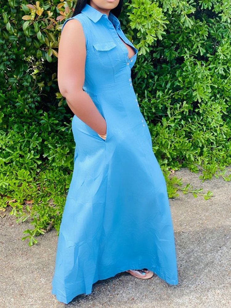 Kvinners Delt Ankel-lengde Revers Midje Casual Kjole