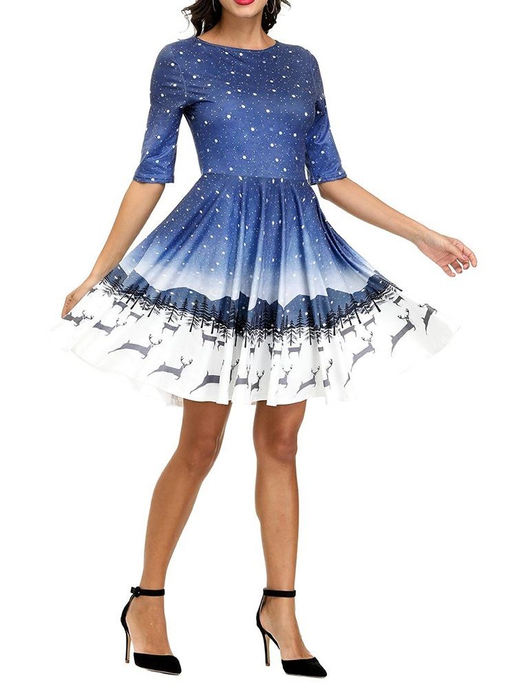 Kvinners Juletrykk Rund Hals Kort Ermet Tegneserie Sommerkjole