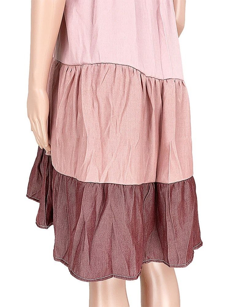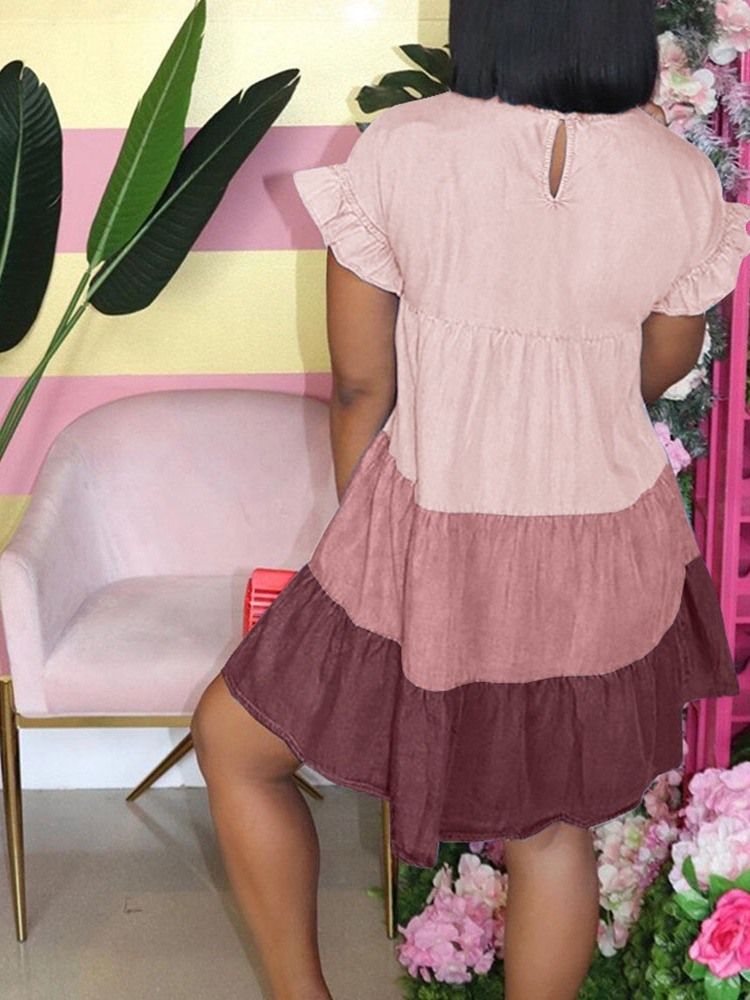 Kvinners Kortermet Plissert Kjole Med Rund Hals Fargeblokk