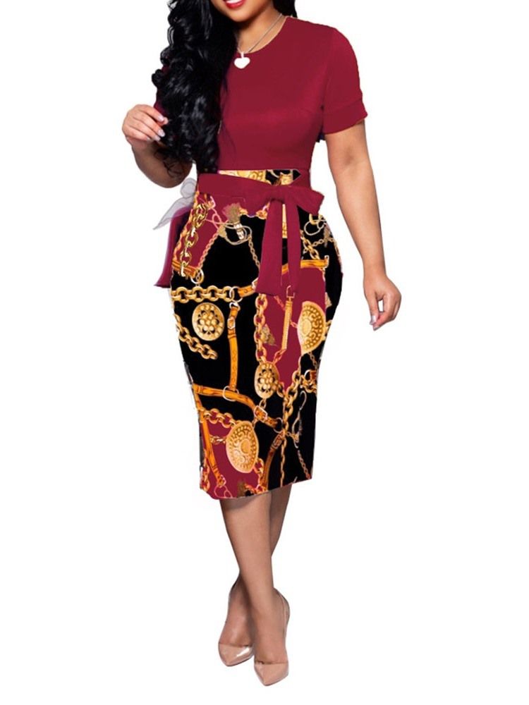 Kvinners Kortermet Rund Hals Trykk Midt Midje Sommer Kjole