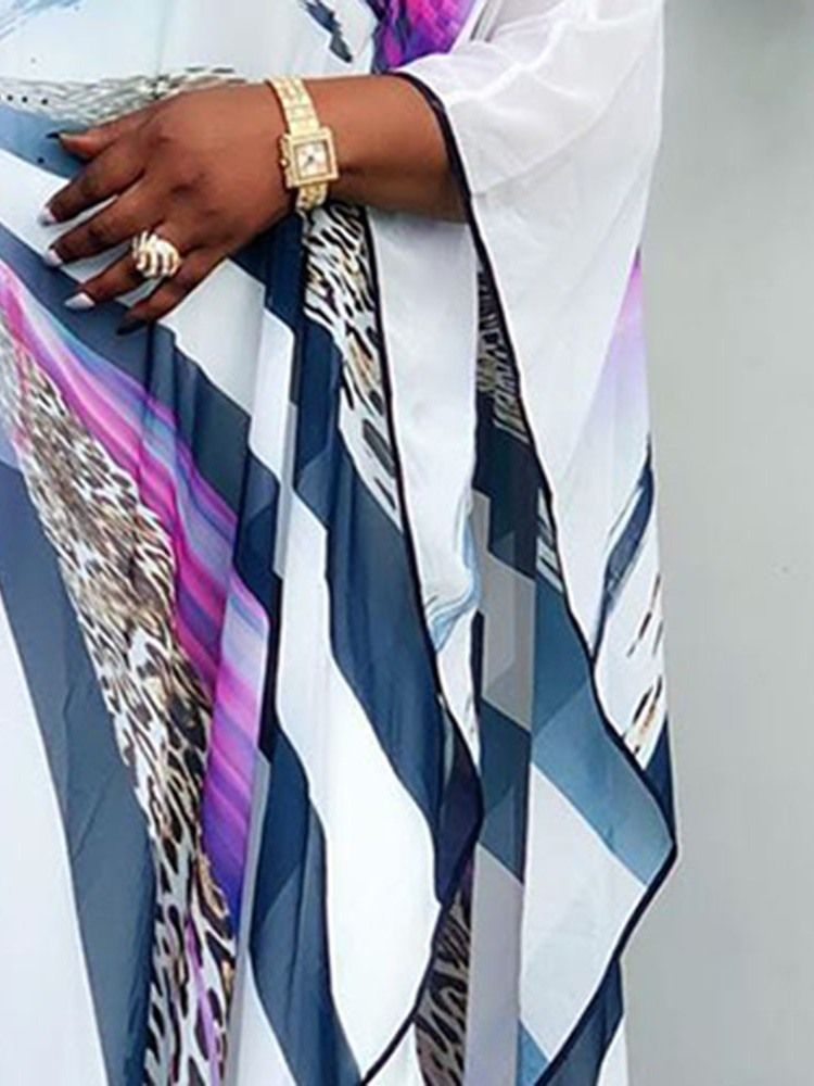 Kvinners Trykk Gulvlengde Ni Poeng Erme Batwing Ermet Rett Kjole