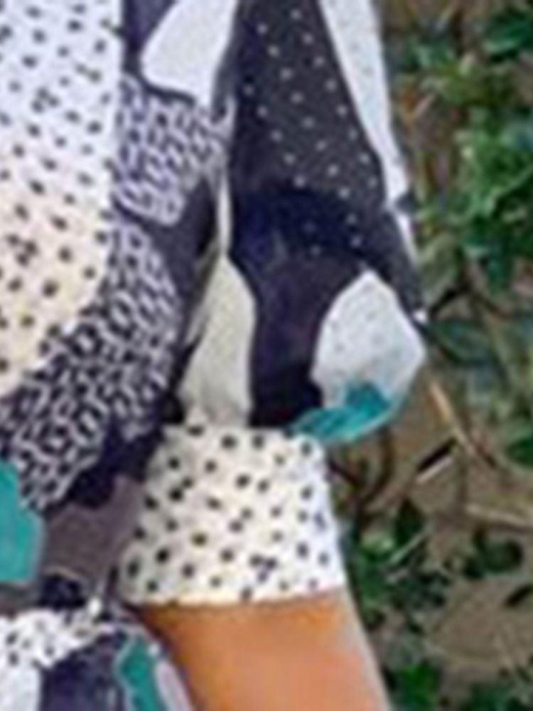 Kvinners Trykk Kortermet Trykk Midkalv Blomstret Midje Kjole (uten Linning)