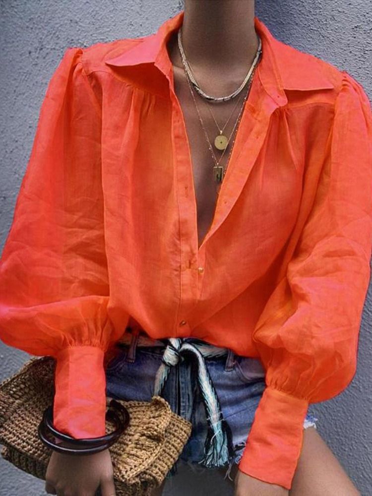 Lapel Patchwork Vanlig Langermet Damerbluse
