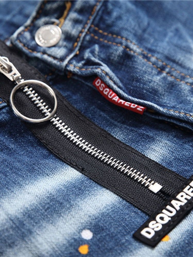 Letter Paint Splatters Mid Waist European Herre Jeans