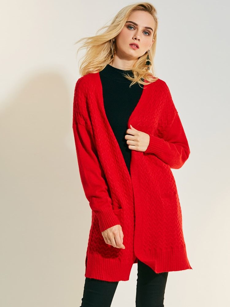 Loose Plain Cardigan Strikketøy I Mellomlang Størrelse