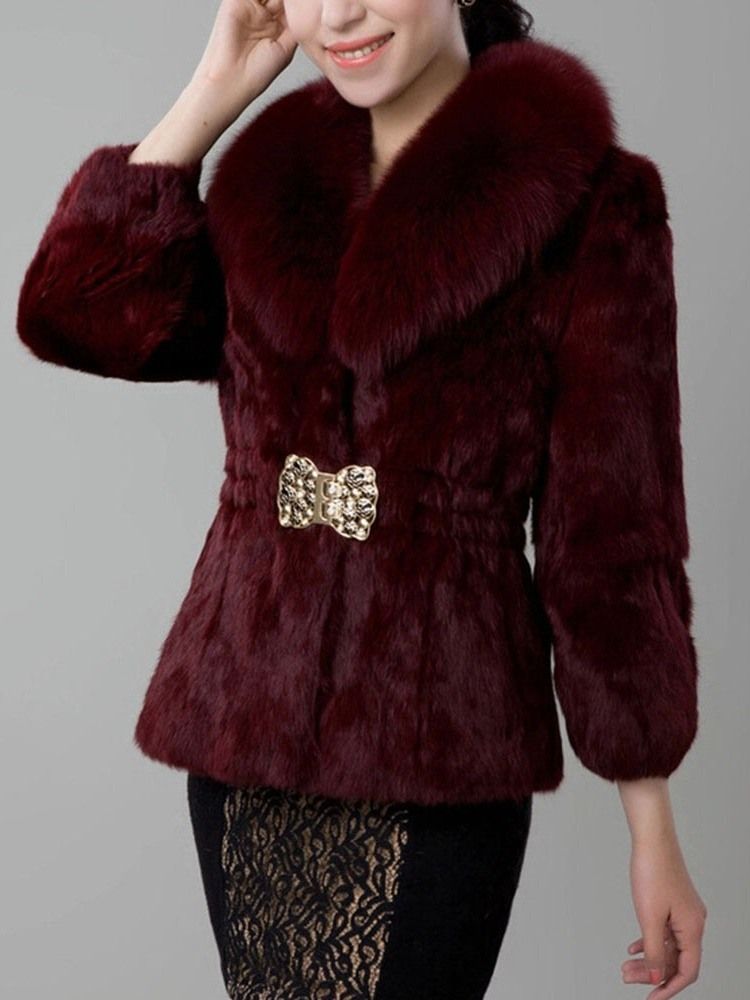 Mellomlang Slank Kvinners Imiterte Pelsoverfrakk Med En Knapp