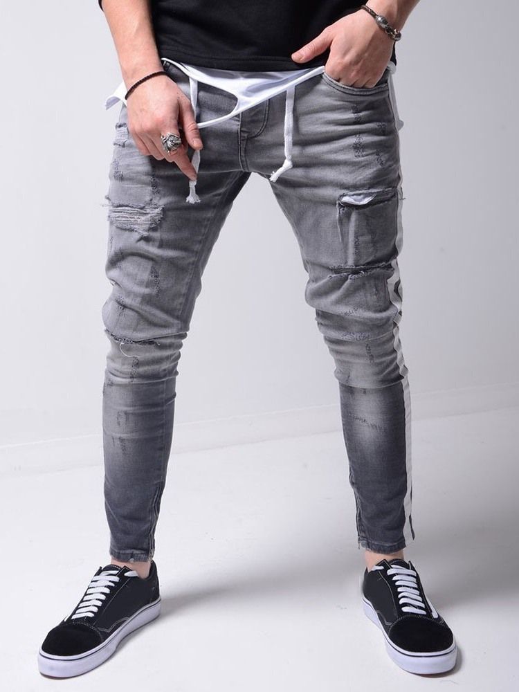 Menn Hole Pencil Pants Glidelås Sports Jeans