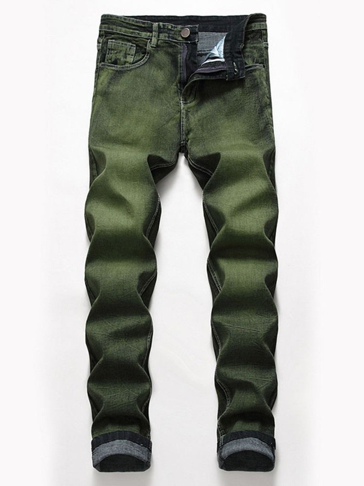 Menns Rett Slitte Jeans I Midje Med Glidelås