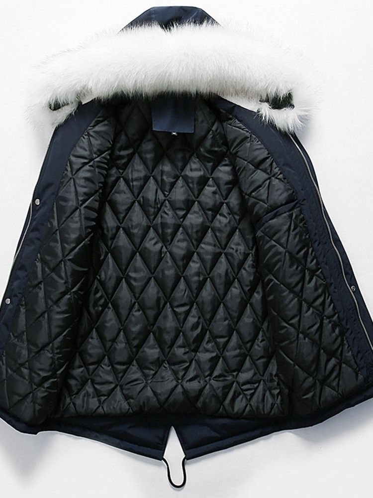Mid-length Hooded Patchwork Casual Glidelås Dunjakke For Menn