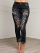 Patchwork Leopard Pencil Pants Glidelås Slim Jeans For Kvinner