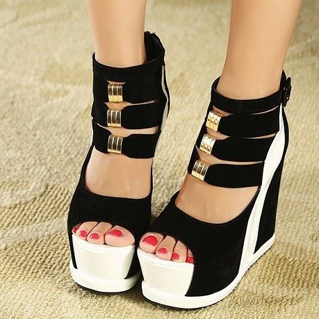Peep Toe Wedge Heel Buckle Platform Sandaler For Damer