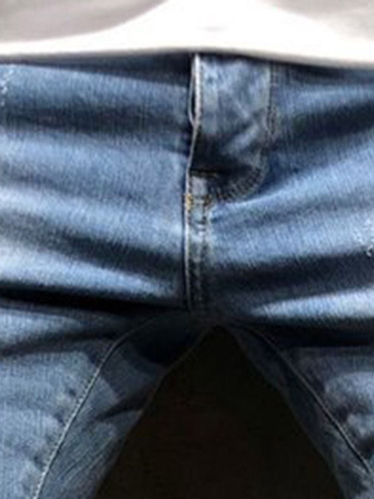 Pencil Pants Stripe Hole Mid Waist European Herre Jeans
