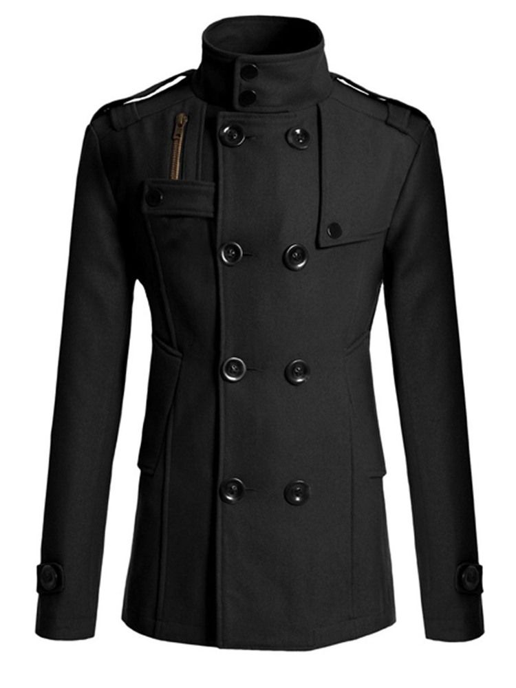 Plain Double-breasted Stand Collar Peacoat For Menn
