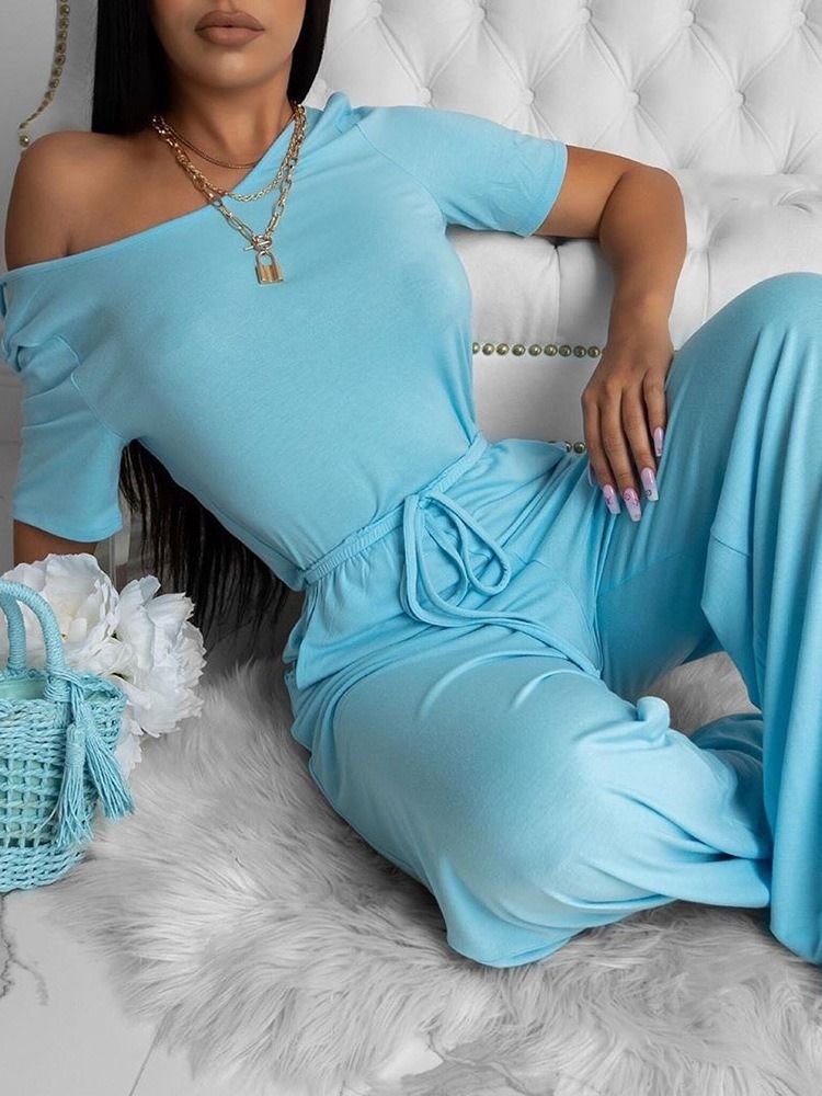 Plain Office Lady Jumpsuit Med Lange Ben For Kvinner I Lengde