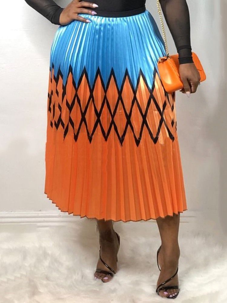 Plissert Skjørt For Ankellengde I Fargeblokk
