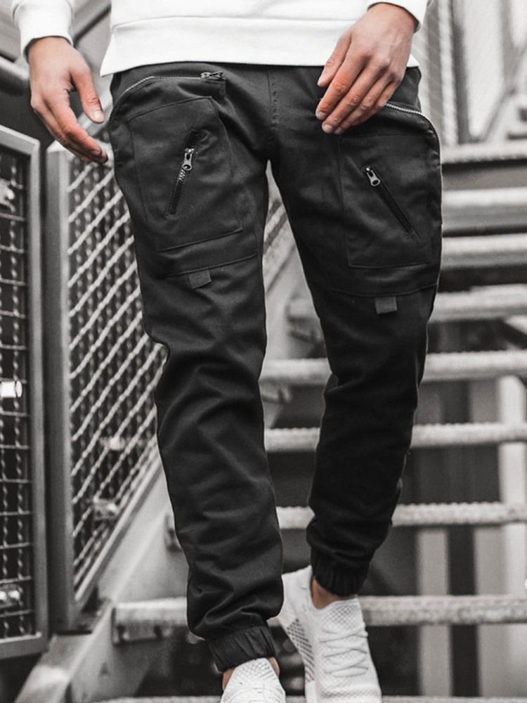 Pocket Pencil Pants Plain Herre Casual Bukser