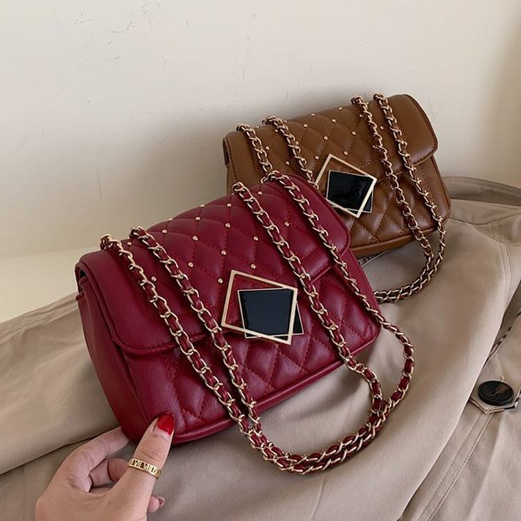 Rivet Pu Plaid Rectangle Shoulder Bags
