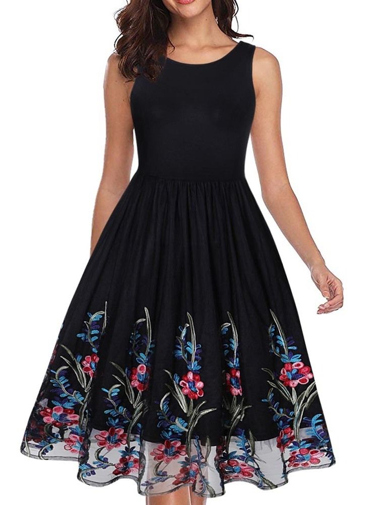 Rundhalset Broderi Uten Ermer Ermeløs Kjole Med A-linje