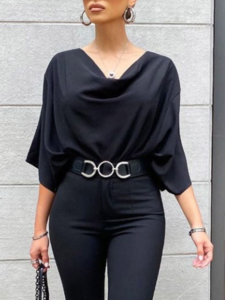Short Plain Three-quarter Sleeve Simple Loose T-skjorte For Kvinner