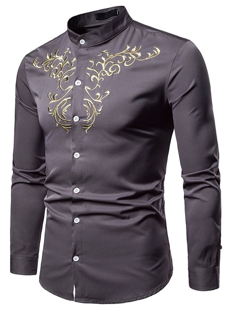 Stand Collar Button Casual Skjorte For Menn