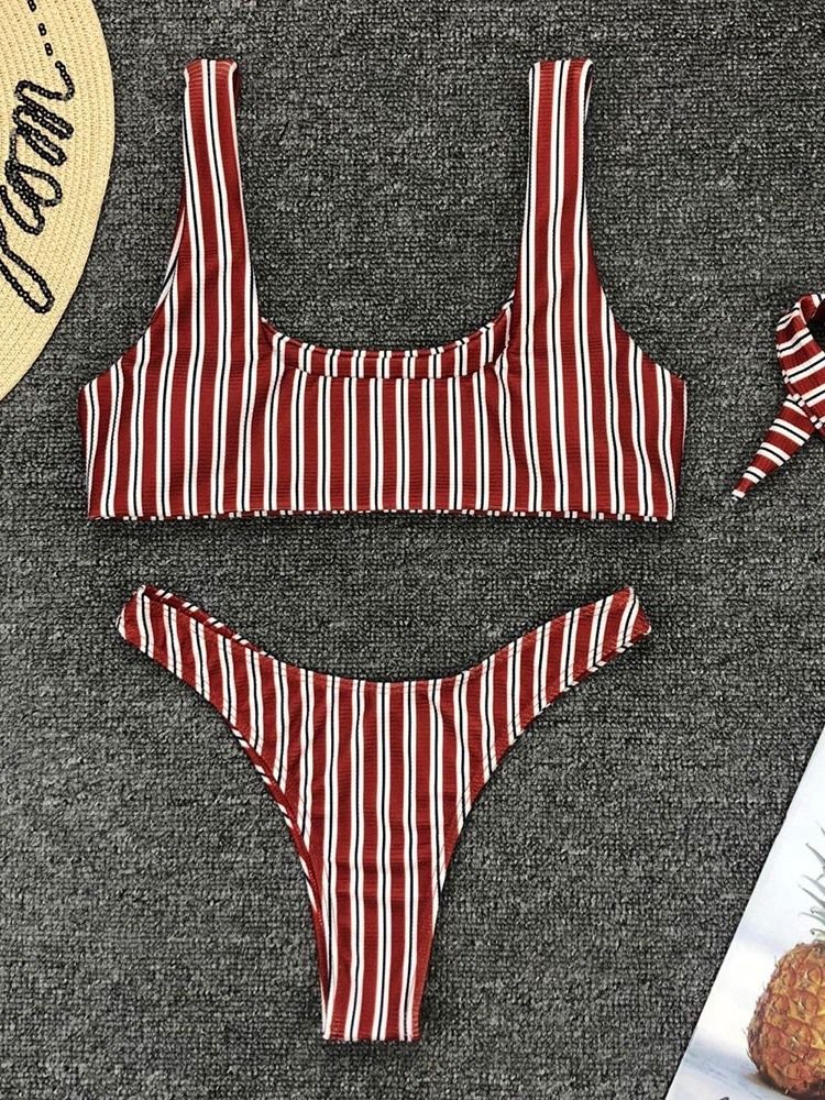 Stripe Bowknot Bikini Set Beach Look Stretchy Badedrakt