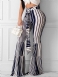 Stripe Med Blonder Slank Hel Lengde Bellbottoms Casual Bukser