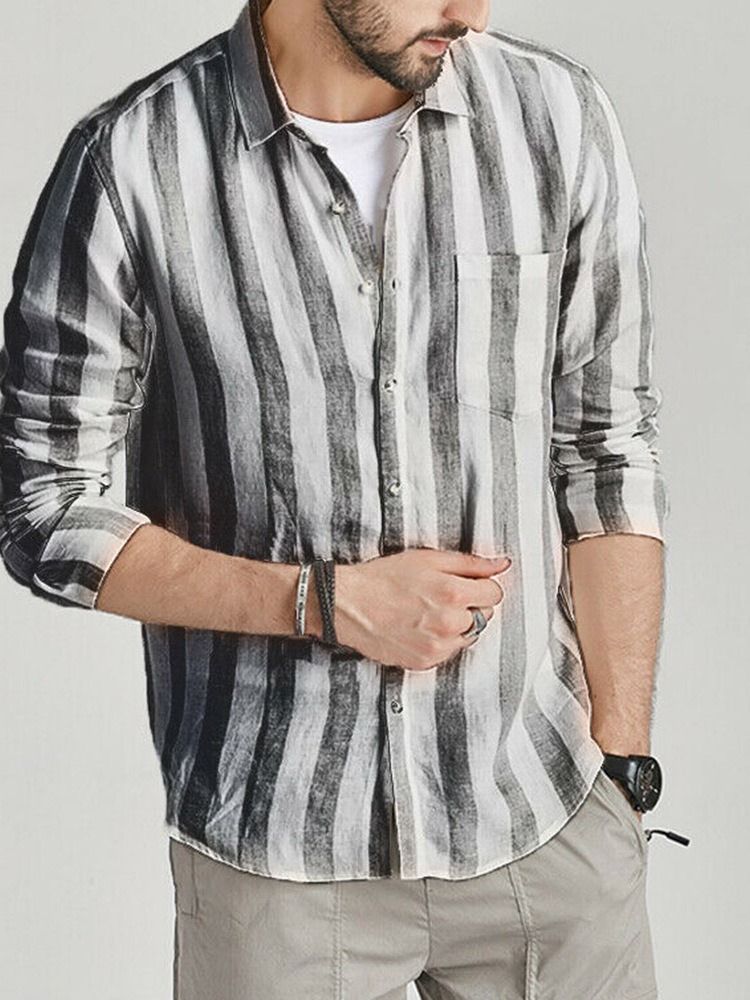 Stripetrykknapp Enbrystet Skjorte For Menn